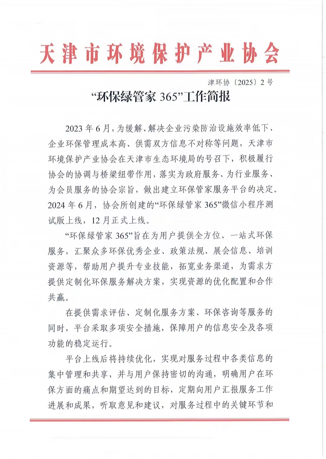 “环保绿管家365”工作简报