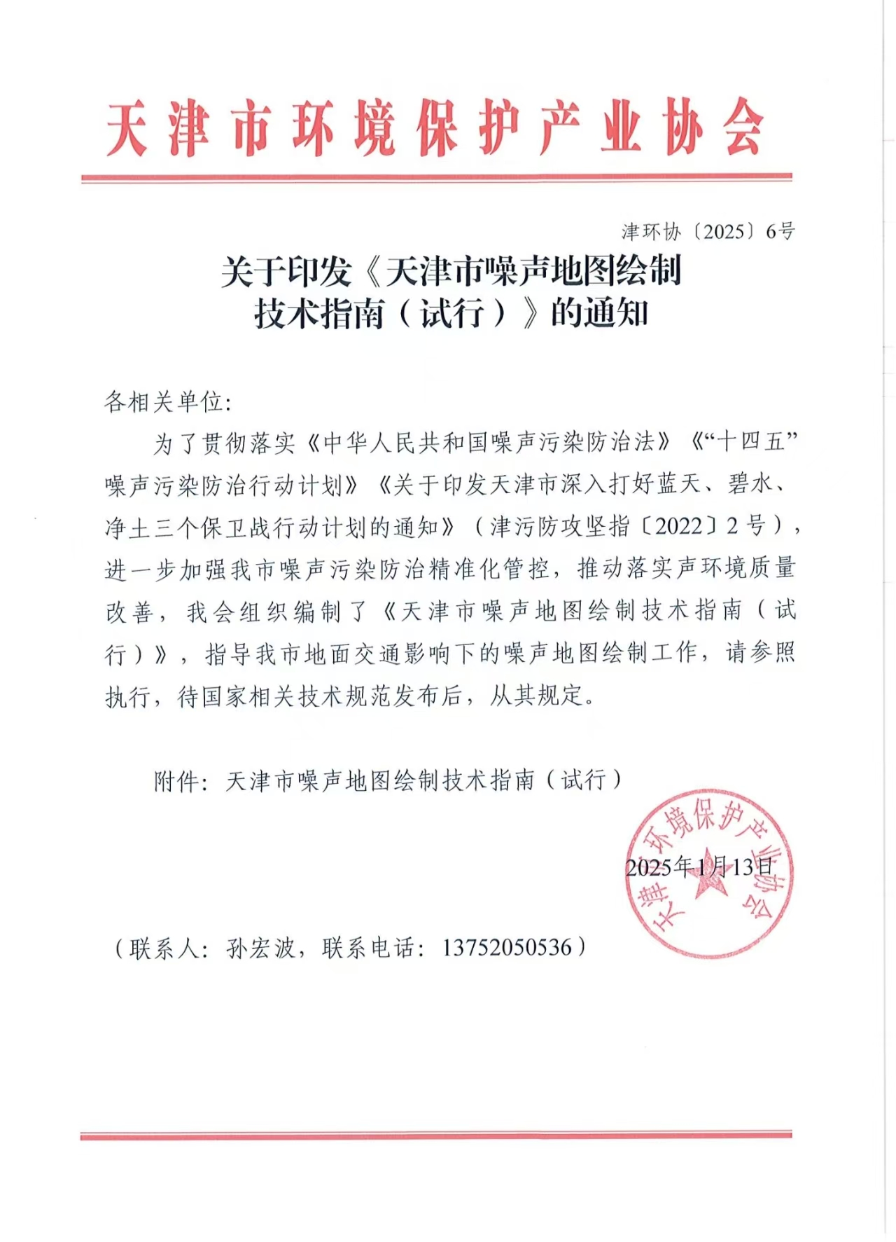 关于印发《天津市噪声地图绘制技术指南(试行)》的通知